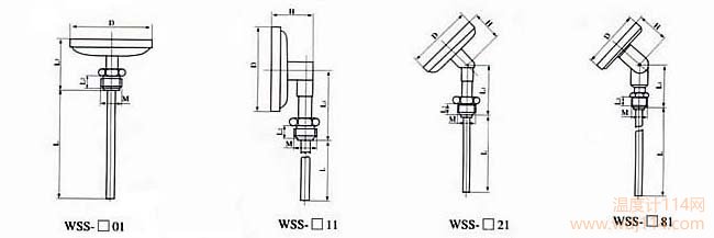 抽芯式雙金屬溫度計參數對照上表中的字母